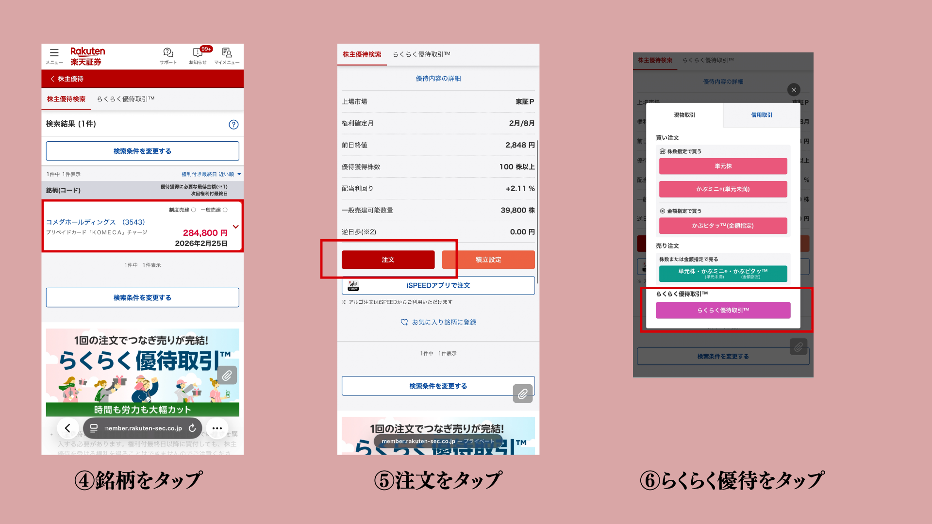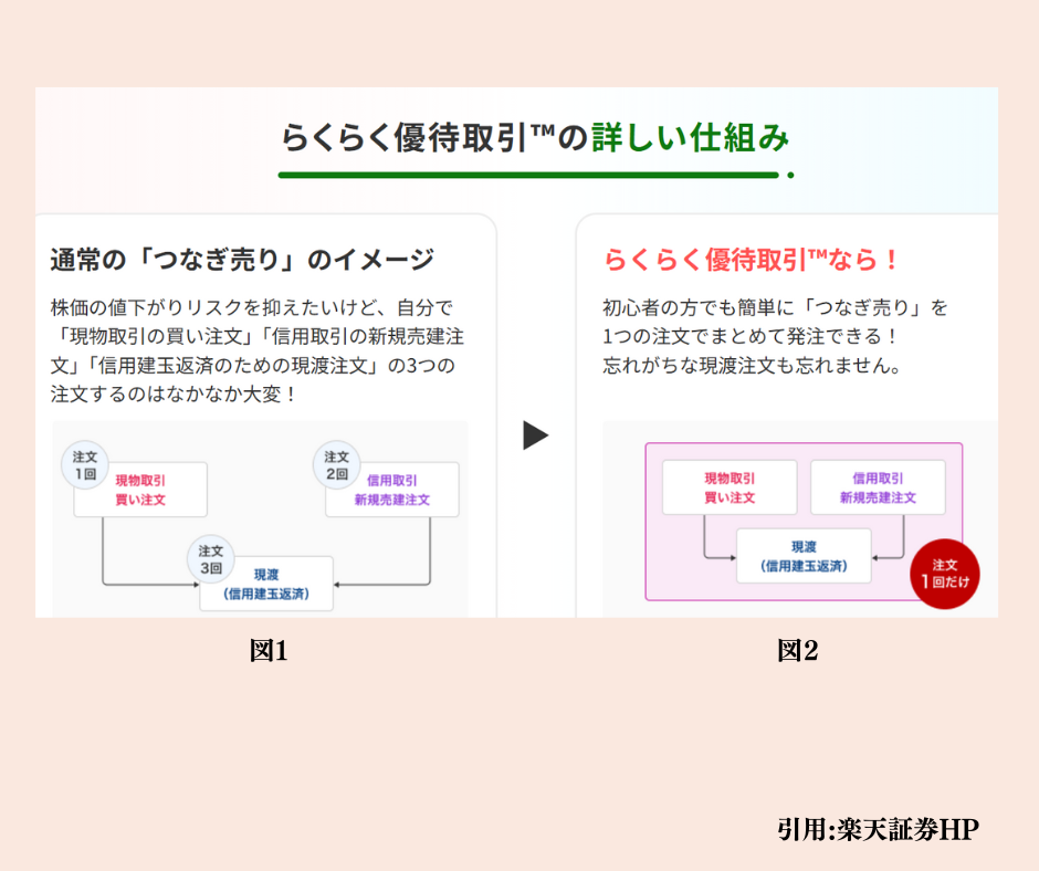 クロス取引は信用売り→現物買い→現引きと最低でもこの3行程を自身でやらなければならなかったけど、らくらく優待は1度の注文ですべて完結しちゃう!