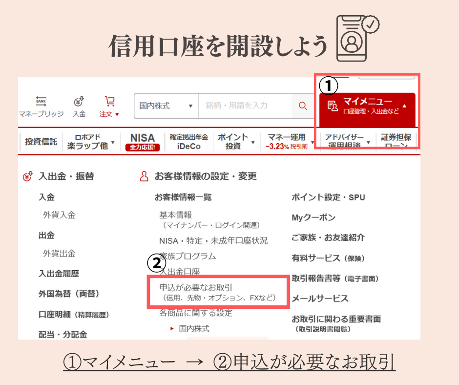 クロス取引(つなぎ売り)をするには、まず信用口座の開設が必要です。
